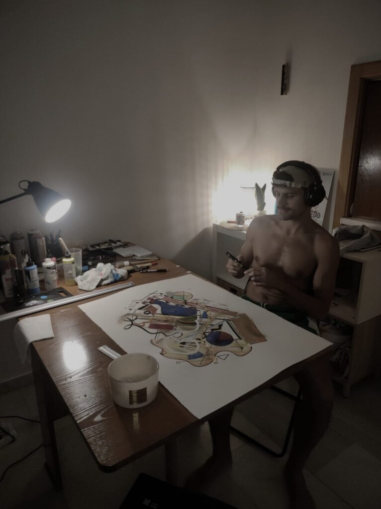 Mi proceso creativo es un diálogo constante entre la intuición y la inspiración del entorno. No busco una representación figurativa, sino una expresión honesta de las emociones que me atraviesan. A menudo, mi trabajo comienza sin un plan definido, permitiendo que las texturas, los colores y las formas emerjan de manera orgánica en el lienzo.